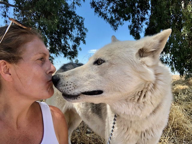 Dr. Pollock with Ragnar, a hybrid-Artic Wolf at the local Wolf Sanctuary where Dr. Pollock volunteered.
